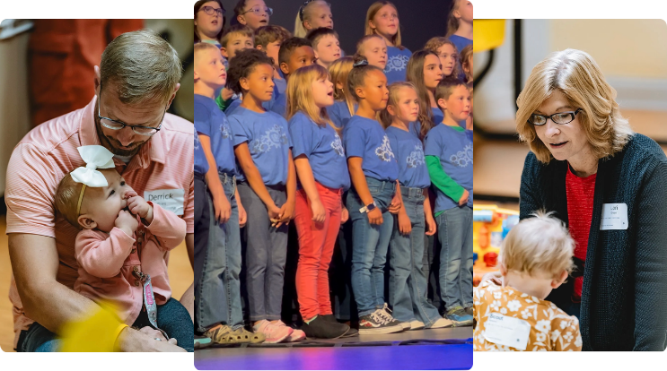 Look for the area designated for first-time families. We will meet your family, check your child in, and one of our volunteers will lead your child to their age-appropriate room.